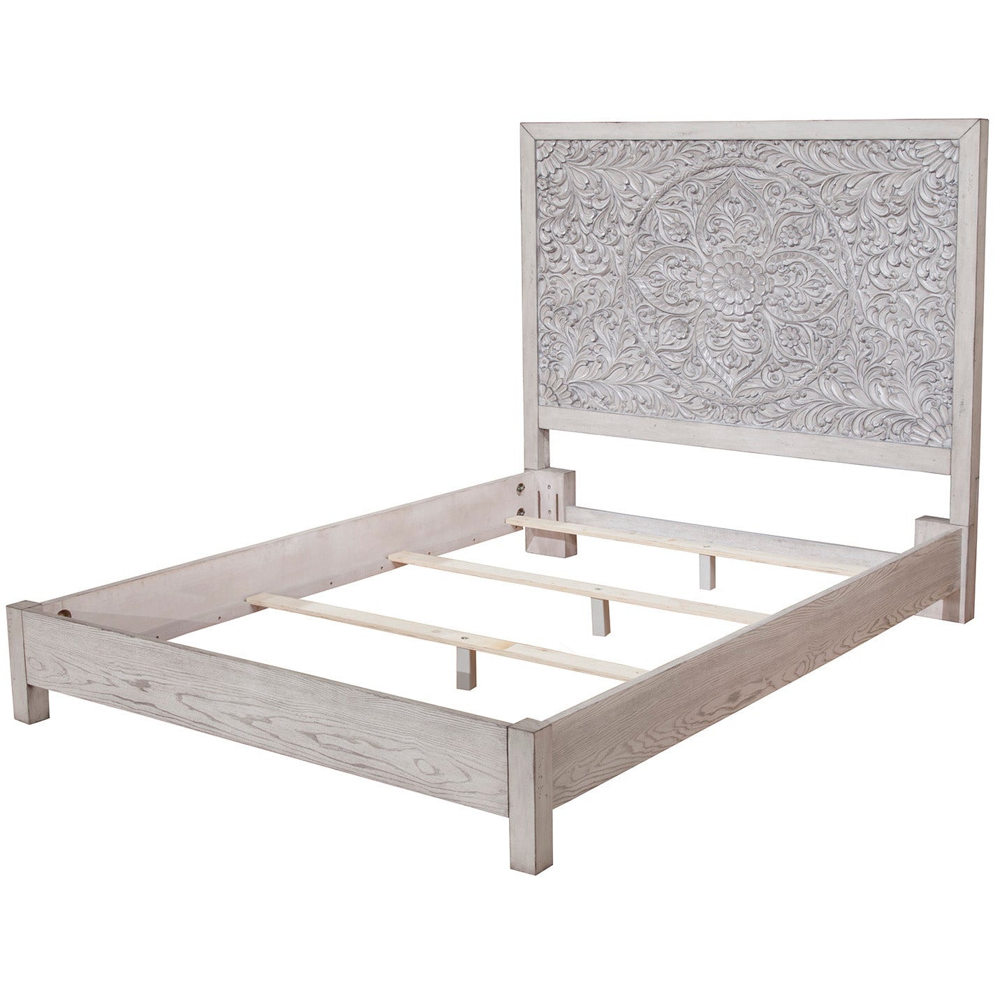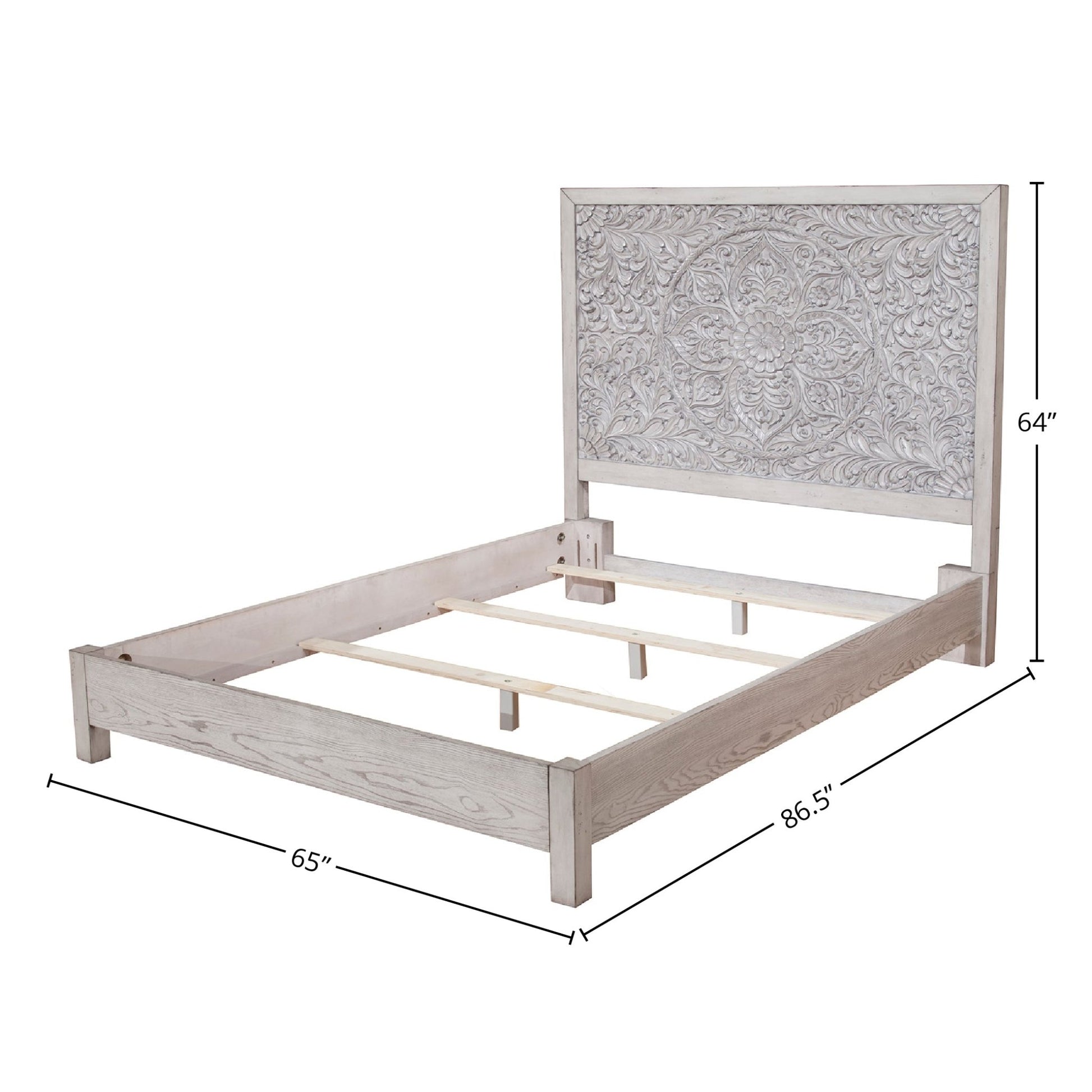 The Aria bed is an artistic, bold design that showcases carved floral patterns on the panel headboard. Constructed of Mahogany solids and Okume veneer, in a Weathered White finish, Aria adds a handcrafted look to your home environment. The bed is available in multiple sizes as a complete unit or headboard only. Coordinates with other pieces from the Origins by Alpine Aria bedroom collection sold separately.